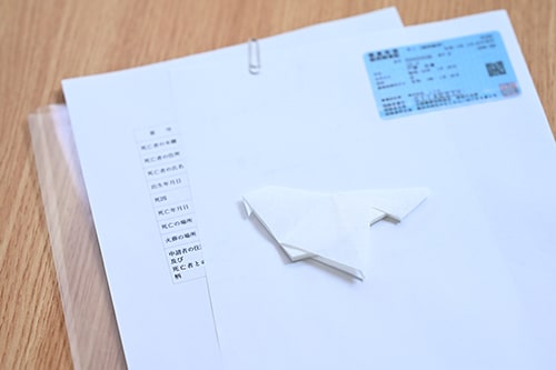 ❸ 書類を入れるファイルに入れて頂き、故人様をお慰めください。
