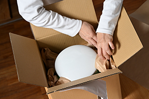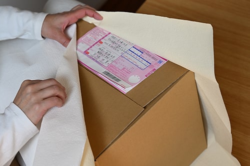 ❺ 段ボールの中に骨つぼを入れて緩衝材で保護してください。