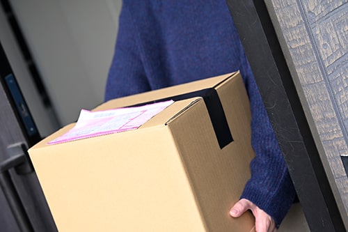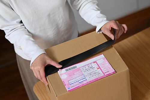 ❽ 段ボールには、届け先、送り主様の情報を記載済ですので、